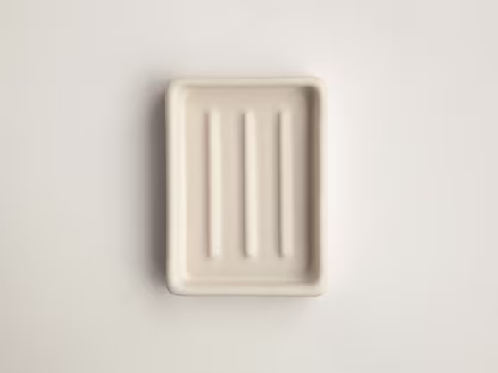 Wat nu? Dan wil je natuurlijk zo snel mogelijk weer droog zijn. Gelukkig ligt er onder je een slim ontworpen, handgemaakt zeepbakje met drie verhoogde ribbels. In plaats van in een laagje water te blijven liggen, rust je stevig op de ribbels terwijl het overtollige zeepwater ertussen wordt opgevangen en kan verdampen.