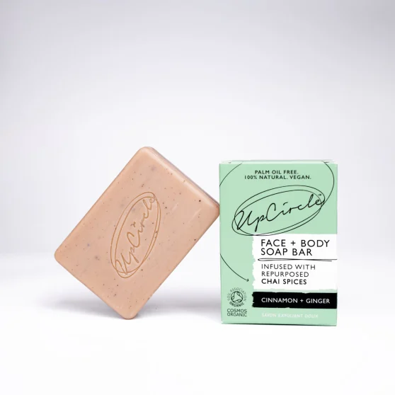 Inspirerend, upcycling, opbeurend: deze kaneel- en gemberzeep is gemaakt met chai-kruidenresten die worden gebruikt om Henny & Joe's chai-siroop te maken.