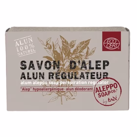 Een lichaamshygiënebehandeling, ideaal na het sporten, scheren en ontharen, deze Aleppo is verrijkt met 5% aluinpoeder met deodorant, adstringerende en bloedstelpende eigenschappen.