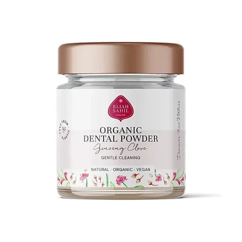 Eliah Sahil biologisch gecertificeerd tandpoeder Ginseng Kruidnagel is een natuurlijke tandpastavervanger. De pure wortel- en plantenkracht van ginseng, kruidnagel, ashwagandha, zeepkruid en anijs reinigt de tanden grondig. Het kalmeert en versterkt het tandvlees en draagt zo bij aan een gezonde mondflora en een frisse adem.