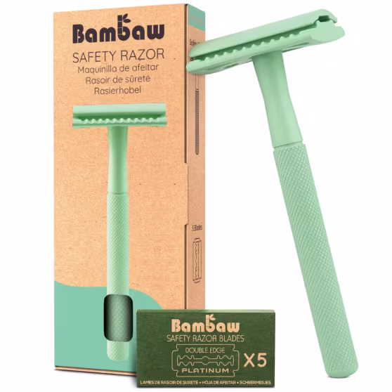 Keer terug naar traditioneel plasticvrij scheren met Bambaw's stijlvolle metalen veiligheidsscheermes. Het dubbele scheermes van Bambaw zorgt voor een gladde scheerbeurt voor zowel mannen als vrouwen.