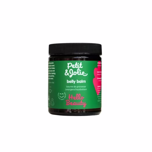 Petit&Jolie zwangerschapsbalsem is een voedende en verzachtende balsem van rijke biologische oliën, als argan en druivenpit. De plantaardige extracten uit Aziatische waternavel en Indiase wierook ondersteunen het natuurlijk huidherstel en de aanmaak van collageen- en elastinevezels, waardoor de huid steviger aanvoelt. De balsem stimuleert de elasticiteit van de huid, hydrateert en verkleint de kans op zwangerschapsstriemen.