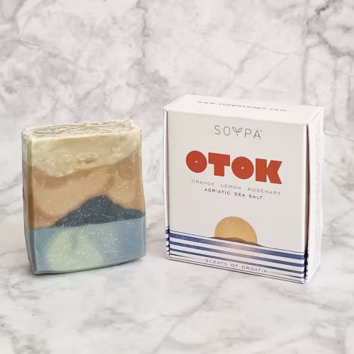 OTOK betekent eiland in het Kroatisch. Geniet van de geuren van citrus, mediterrane kruiden en zeezout. Voeg het geluid van krekels en golven toe. Combineer het met een uitzicht op een kristalheldere zee en een adembenemende zonsondergang. Dit is een recept om één van de 1000 eilanden van Kroatië met al je zintuigen te ervaren met deze zeep.