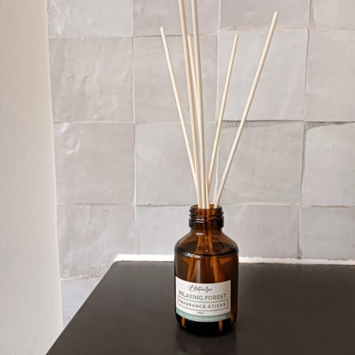 Plaats de geurstokjes in de glazen diffuser en geniet van de natuurlijke geur die zich langzaam door de ruimte verspreidt.