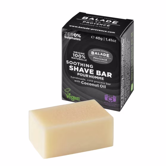 Speciaal ontworpen voor mannen, zorgt onze vaste scheercrème voor een gladde scheerbeurt en een verzachtende ervaring. Verrijkt met kokosolie, druivenpitolie en sheaboter, hydrateert en beschermt het de huid. Deze scheerzeep is veganistisch en een natuurlijk en ecologisch alternatief voor traditionele scheerschuimen of -gels.