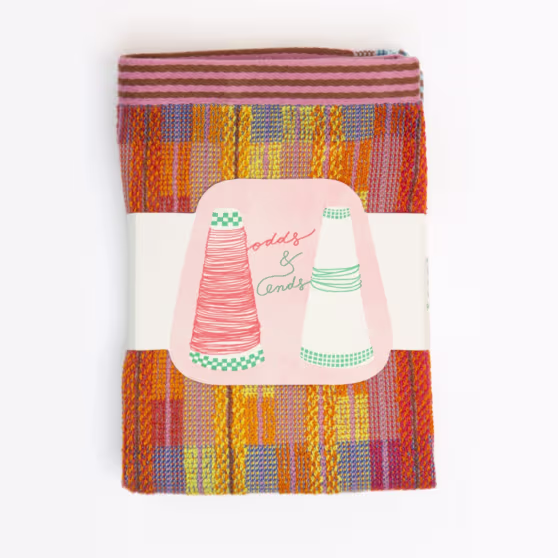 Kleurrijke huishoudtextiel gemaakt van restjes uit de industrie! Wanneer fabrieken garens verven om textiel te weven, maken ze er wat extra van—voor de zekerheid—maar die blijven vaak ongebruikt. De Odds & Ends-textiel is ontworpen om het maximale uit deze restjes te halen, waardoor onverwachte kleurencombinaties ontstaan.