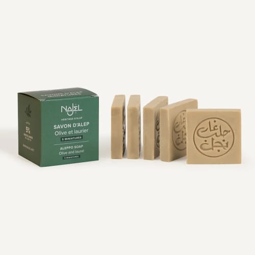 Ontdek onze miniatuurzeep uit Aleppo. Deze pareltjes, handgemaakt in onze zeepfabriek in Syrië, combineren 95% pure olijfolie en 5% laurierbesolie. Olijfolie en laurierbesolie zuiveren en kalmeren alle huidtypen. Elke zeep wordt gemaakt met respect voor voorouderlijke kennis, die van generatie op generatie wordt doorgegeven. Dankzij het miniatuurformaat kunt u de zeep meenemen, laten testen door uw gasten of zelfs cadeau doen.